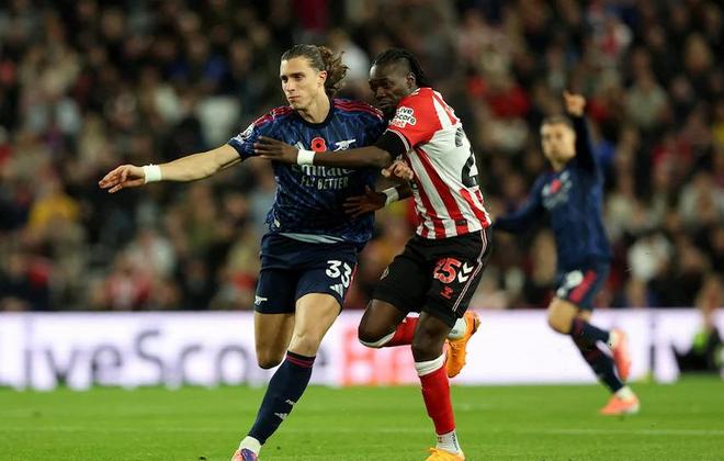 尽管桑德兰是本赛季的英超升班马,但是他们的表现非常出色,此役面对各项赛事豪取十连胜的领头羊阿森纳,桑德兰在主场也踢得非常有气势,巴拉德上半场就帮助黑猫取得比分上的领先,虽然萨卡和特罗萨德在下半场连入2球,帮助枪手反超比分,但伤停补时阶段布罗贝伊的倒钩绝平进球,帮助桑德兰2-2逼平英超领头羊,后者也无缘创造英超球队连续9场以零封方式获胜的神迹。